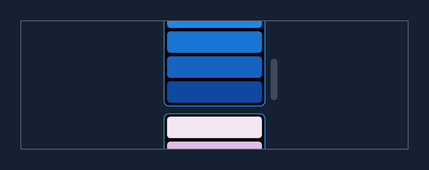 The DecoratedBoxes are stretched so that their top and bottom edge are barely out of view, while the contents of SliverList are still lazily built.